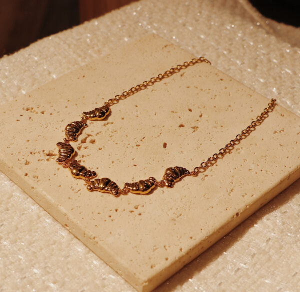 Juntas imaginamos el croissant como un ícono de estilo: dulce, perfecto, elegante. Y lo llevamos a la joyería a través de piezas esculpidas a mano, bañadas en oro 24k y llenas de textura y carácter.